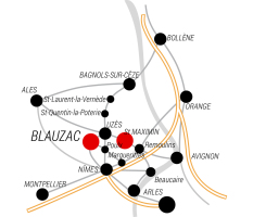 Blauzac is situated less than 10 mins from Uzes & 18 mins from Nimes on the D979, route de Nimes.