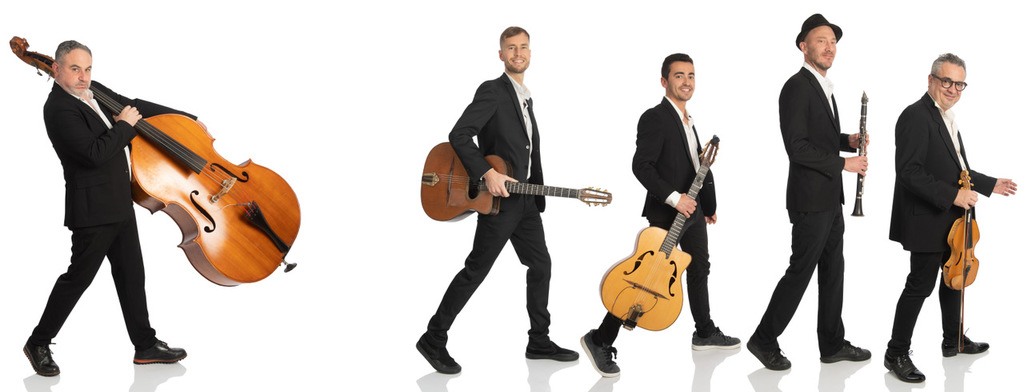 With two guitars, double bass, violin, and clarinet, Basilic Swing takes you on a vibrant musical journey at the crossroads of genres and cultures.